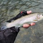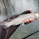 Rainbows normally spawn in the spring but as we found out from Jennifer Girondo, our local St Louis fishery biologist at our annual dinner last year, they can also spawn in the fall. We notice that many of the rainbows were setting up to spawn in the fast-moving water. We could see the females using their tails to create deep depressions in the gravel bottom building their “Redds”. Here they will lay their eggs as a big male watches, ready to fertilize the eggs. Other smaller trout were behind trying to get in on the action. My theory is that none of the trout cared much about eating – they had other things on their minds – if you catch my drift. We passed some egg patterns by the trout downstream from the Redds to see if they were waiting patiently for eggs to be released but since that wasn’t happening for real yet, they weren’t interested. So, I say give them a little more time to do “their thing” and then the catching will begin again.