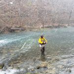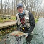 The day was predicted to have a few light snow showers at around three o’clock which was fine with us since we would be out of the park before 2 pm. We started the day around the island in the beginning of the park and saw lots of nice big fish in the fast-moving waters running directly out of the spring. The three tried woolybuggers, midges, nymphs, egg patterns, stoneflies, leeches, etc.… to no avail. What in the world was going on? We could have hit the trout on the heads with our flies as we watched them in the water. Jim “caught” a nice rainbow, about 20 inches, that he netted. Notice how I said “caught” – you’ll have to ask him. Kenny caught a small trout and two Rock Bass and Jim struggled. From the pictures you can see that the so called “light snow” at 2pm came at 10am and it wasn’t so light! It was just one of those days but why? Here is my theory: