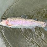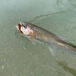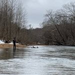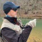 A no-notice trip to check out the Meramec river happened on Wednesday, February 20th. Kenny Klimes and Jim Craig wanted to see if the Meramec is fishing better. They fished about five hours from the bend outside the park to the old bridge crossing downstream. From the cold temperatures and snow as of late the water temps were very cold. Several times they had to exit the water to get feeling back in their toes. A few fish were caught (3 rainbows and 3 browns) but it seemed that the trout were just a little bit lethargic from the ice cold water temperatures. Also, the flow was around 800 cfs which at times made it a little difficult to stand and/or cross in certain locations. The day remained cold and cloudy with the sun peeking out just once. The best flies were woolybuggers fished deep and slowly with a little “pop” every so often (no stripping). I feel once the weather breaks and the water temperatures rise the fishing will turn on outside the park and Cardiac Hill.
