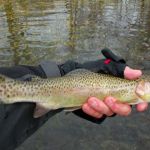 Do you ever notice how the cold weather warms up fast when your catching fish? Five FATC started this day with temperatures right at about 18 degrees. Jim Craig, Barry Dunnegan, Bill Byington, Kenny Klimes and a mystery man headed to fish the Meramec river and the park on this frigid Tuesday morning. Four started outside the park to check out the “brown situation” and Bill stayed in the park to fish. A few fish were caught outside the park but not like it should have been. By noon the guys headed back in the park for lunch and the afternoon temps started to warm up in the high 30’s. Each man hit different spots throughout the afternoon. Big fish of the day went to Barry with a nice 16 inch rainbow. Trout in the 15-12 inch range were caught most of the day. The best flies were the scud, Barr’s emerger, Griffith’s gnat, mole hair leech and Landon Mayer’s leech patterns, and wooly buggers.