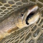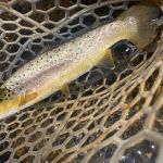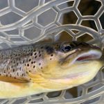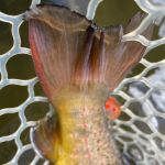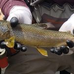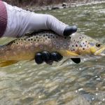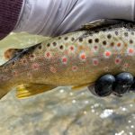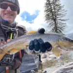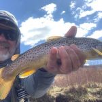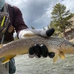 Day Four: With everyone together we decided to head to the famous Frying Pan river near Basalt, Colorado. As we drove up the Frying Pan river valley the weather changed again from cloudy skies to snow blizzard. Check out the video below. Not just one blizzard but two as we had another while on the water fishing. So bad, we ran to the cars for shelter. BUT that did not deter us as we had one of the best fishing days of the trip. The Frying Pan has some of the most beautiful Brown trout you will ever see due to the Mysis shrimp they eat. We fished near the bridge below the dam. The pictures tell it all as small flies did the trick; Barr’s emergers, RS2s, and soft hackles brought most trout to the net.