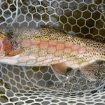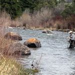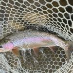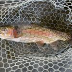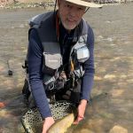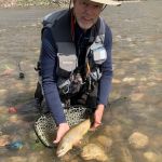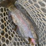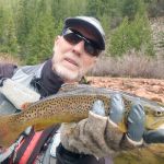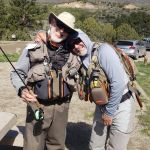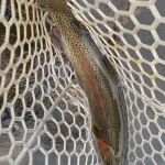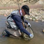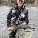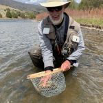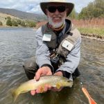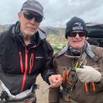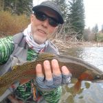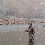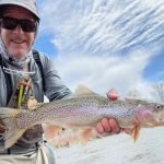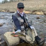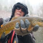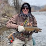 Day Three: Greg arrived with news of his work situation but more importantly he was ready to fish! After a great breakfast (yes, made by John), We decided to hit a couple other spots on the Eagle river to get into the fishing groove. We fished the Eagle river again but this time at the park in Edwards, Colorado, and Wolcott, Colorado. On this day, the fishing was better with many browns and rainbows caught but the weather turned against us as it snowed all morning long. The best flies seemed to be Kenny’s “Hair of the Dog” fly, black leeches, and the Pink Squirrel. So, a lesson learned. Be careful where you put your rod after you catch a nice fish and would like a photo. We had an accident when Greg put his rod down on the ground, partly in the water but could not quite get the words out to tell Jim , who was running over to him to get a picture, “watch out for my rod”. Ouch, broken tip and one rod out for the week. Just be careful out there.