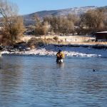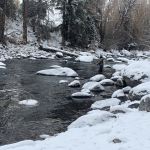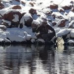 On Monday night and Tuesday morning the snow fell (10 inches) so we decided to stay close to Beaver Creek to fish just in case things got worse. We fished the Eagle river again but this time near Edwards, Colorado. The snow was deep and again the fishing was tough. Small midge patterns brought a few fish to the net. I think our biggest worry was slipping on the boulders and falling in. Weather turned cold fast and the prediction for Wednesday was below zero temperatures. We returned early to the lodge and hit the bar and restaurant.