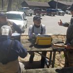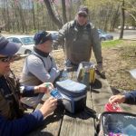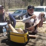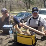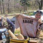 So, we all met for lunch at the picnic bench by the Nature Cabin to talk strategy. Kenny received a surprise when Miles presented him with his “belated” birthday present. Since his Birthday Tournament was cancelled twice, Miles thought it was time for him to receive his surprise birthday gift anyway. As Miles held the small tube and talked about how Kenny should get into Tenkara fishing to be the complete angler, you could see the look of “worry” on Kenny’s face as he thought he was receiving his first Tenkara rod. The tube had the Official Tenkara USA logo on it and as he opened the tube slowly, he only found a T-Shirt inside that said, “I’m Your Mama now, Maggot” with a Pug Dog wearing sunglasses on the front. Only a T-shirt that a Sensei would love!!!! Of course, we all laughed!!!