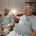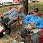 Everyone was invited to Jim and Kenny’s cabin that night for a social hour (or 3-4 hours). John, Don, Steve, Jim and Kenny had a merry evening sharing stories, jokes, banter, beer, and bourbon. Maybe it did go a little late….as the five of us didn’t make it out for the opening siren the next morning.