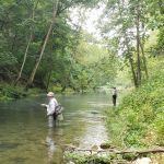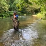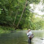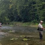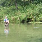 We pretty much blanketed the park both days. Thursday morning was crowded in the park. Guys were still catching fish despite the consensus that the fish were suffering from lockjaw. There were a lot of fish in the park, but they weren’t active. That afternoon, sections of the fly fishing only area started to clear out and several of us had whole sections of the river to ourselves. We met that evening at 5 PM at the Montauk Lodge for dinner so those staying overnight could fish that evening. The lodge was happy to serve us –we can be boisterous a times– and allowed us to put several tables together so we could sit as a group.