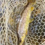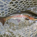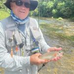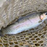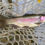 After dinner, Jim and Kenny headed for Tan Vat and others stayed in the park. At Tan Vat the rainbows were hitting on cerise worms and the browns were hitting soft hackles or Barr’s emerges swung in the current. Kenny netted an 18” brown on a tiny soft hackle. I am not sure how others did in the park that evening, but I didn’t hear any complaints.