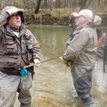 On Friday, Nov 3, 2018, Martin Jones and I (Jim Craig) headed for the Meramec River outside Maramec Spring Park. The day was perfect. The park was closed to fishing, so NO ONE was in the parking lot as we drove past the spring. We were excited to have the river to ourselves. Then, as we approached our usual spot at the back of the park, we saw that another guy was already there gearing up. That meant we weren’t going to be first on the river, and we weren’t going to have it to ourselves. (Yes, I know that is a little selfish, but isn’t that what we all wish each time we go?) As we approached this interloper’s car, he began to look a little familiar. Hey, it wasn’t an interloper; it was FATC member Bill Byington. He was waiting for us! While Martin and I started the day as the dynamic duo, we were now the three amigos. (Later that day it would evolve into the three stooges.) It was a great surprise to meet up with Bill for the day.