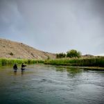 In the afternoon, we decided to go for size and traveled to the Strawberry River which has a reputation for not yielding many fish, but the ones caught are generally pretty big. There is only a small section of river to fish as most of it runs through Indian tribal land which is prohibited. We switched up flies on the Strawberry to large hoppers with Copper John droppers. Dodging rain and some hail we managed to fish this pretty river for a few hours with a big payoff, for Pete at least. Towards the end of the day a big Brown took Pete’s Copper John. After a nice fight Pete landed a 21.5” Brown trout. Then, with the heavens about to erupt, we decided it was time to leave, ending our great trip.