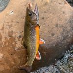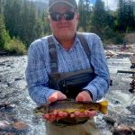 Day 2 we returned to fish both above and below the spots we fished on Day 1. This also included starting at a small reservoir and working our way upstream. Pete did very well on Day 2 catching numerous Brookies and Rainbows. Perhaps basking in the glow of the two really nice fish the day before, John did less well but still managed to catch a couple of Rainbows and Brooks. Again, the PMX + dropper was the rig of choice.