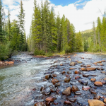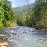 We fished Yellowstone Creek the most. It is a relatively fast-moving freestone creek with lots of boulders, providing lots of pocket water and slower moving seems where fish were holding. Pete also found a nice slower moving side channel that was very productive. For this creek we fished almost exclusively a PMX with an emerger dropper. The majority of the fish took the PMX (a small hopper variant) but we also caught a few on the emerger fly. We had a lot of luck on the Yellowstone on Day 1, catching double digit Rainbows and Brook trout.