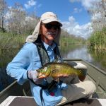 The Oscars and Mayans are apparently Florida’s version of pan fish. Both are invasive species for the area. They ran about 10 to 12 inches in length, very thick and filled with lots of fight. Once hooked they head for cover, so a hard pull is needed to keep them clear of Lilly pads and weeds. They put a heck of a bend in a 5 weight rod. These fish were so plentiful in the canal we were fishing that mid-afternoon that’s all we were catching. And they wore me out so we called it a day.
