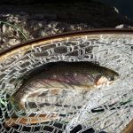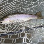 The team met for a late warm lunch in the Lodge, making plans for the afternoon. While we were eating, the sun had come out making the afternoon beautiful. Tim was tired of catching so many fish, so he decided to take his soft hackle upstream (with not a lot of luck) and Glenn headed directly to Tim’s spot and Sid headed below the lower hatchery. Both picked up where Tim left off, catching one after another using wooly buggers, soft hackle. Sid tied on a yellow sally right before the horn and got one to take it off the top of the water.