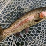 We practiced our techniques before lunch as we always do. Ted caught fish right away on a streamer and he took a sigh of relief. New guys, please don’t put that kind of pressure on yourself. He also had a trout on each technique – stripping streamers, swinging wet flies and nymphing – all before lunch time. The fishing was overall slow as I watched others in the area with few fish on. So, we did well.
