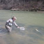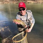 On Tuesday, March 16, 2021, Bob Ksiazek set out for his graduation trip to Montauk with the Professor (Terry Seaton) as his witness. Bob had taken one of Kenny’s first-ever fly fishing classes, at Ellisville United Methodist Church, in the early 2000s. He also took a refresher course a couple of years ago, but he had still never officially “graduated” as a FATC member. Heavy spring rains threatened to thwart the trip, but Bob was determined to make it happen. Bob was very well prepared and proved to be an excellent student! After purchasing our tags, we pulled into the parking lot near the Naturalist cabin. Standing right in “our spot” were 3 other FATC guys (Brett, his son Sam, and Sid) so it was a very fun start to the day. We headed upstream toward the spring with the idea that the water might be a little clearer. Water flows were increased but fishable. Within a very short time, Bob graduated by swinging a white wooly bugger with a sink-tip leader. His first catch was a very nice rainbow! Everything else that happened that day was a bonus! Several more fish were caught as we worked our way back to the car for lunch. After lunch, it was time to get some experience with dead drifting and nymphing. Bob was equally impressive by catching another nice rainbow on his very first cast near the area of the boulder! He must have been thinking “this is easy”! We caught fish in the afternoon on big stuff like a mop fly and little stuff like a P&P and a Sunday Special. All in all, it was a highly successful and very enjoyable day for the two good friends! Bob said he wants to go again someday so that’s a good sign!