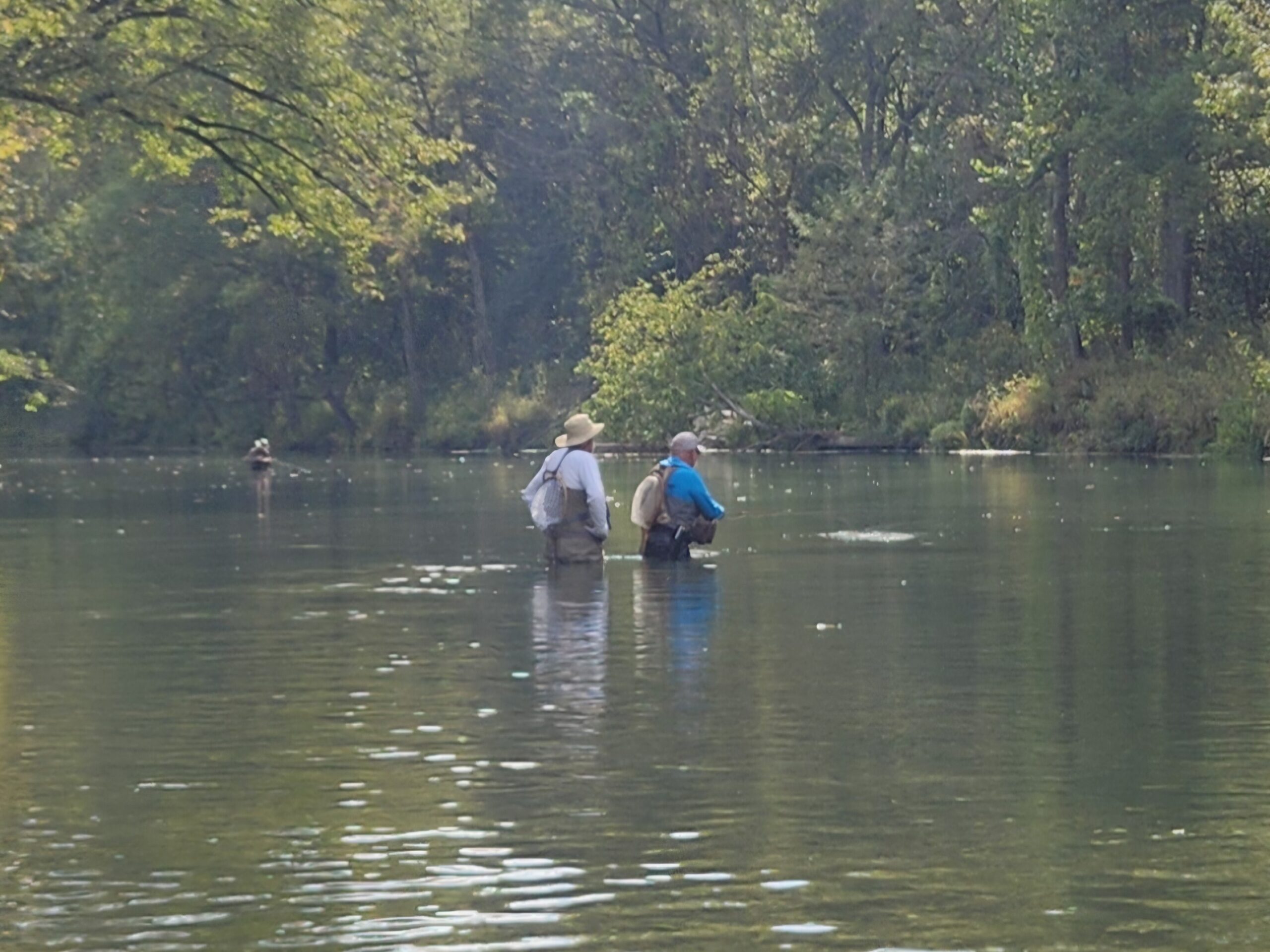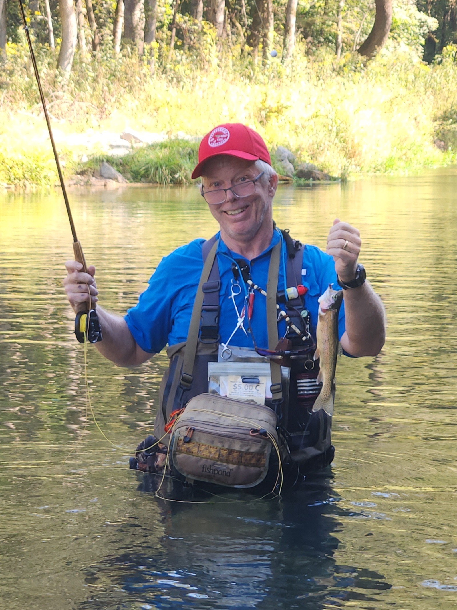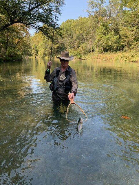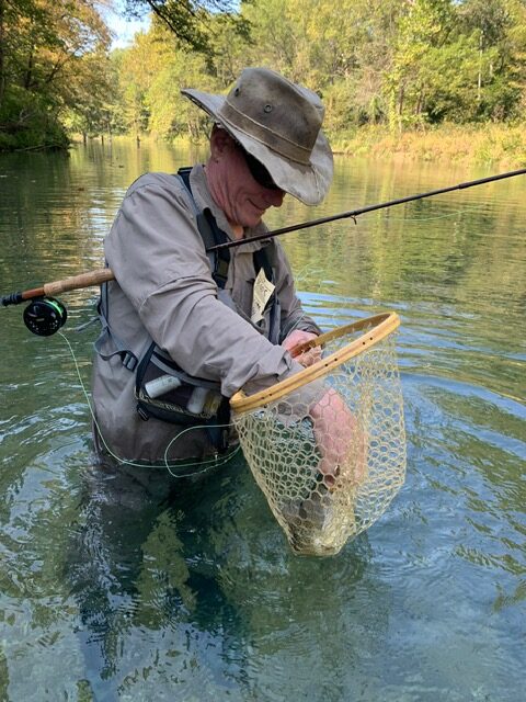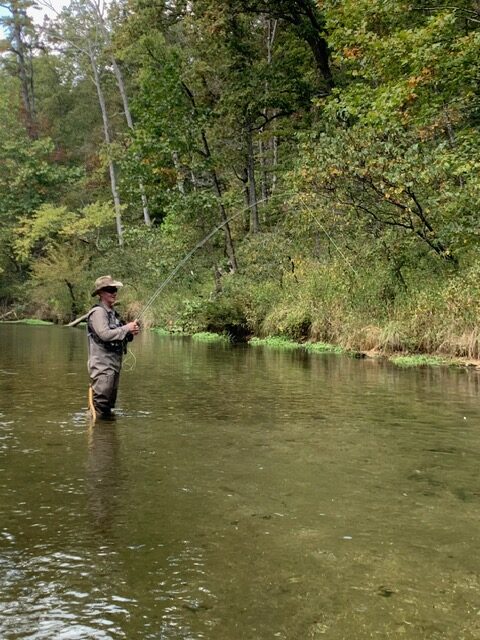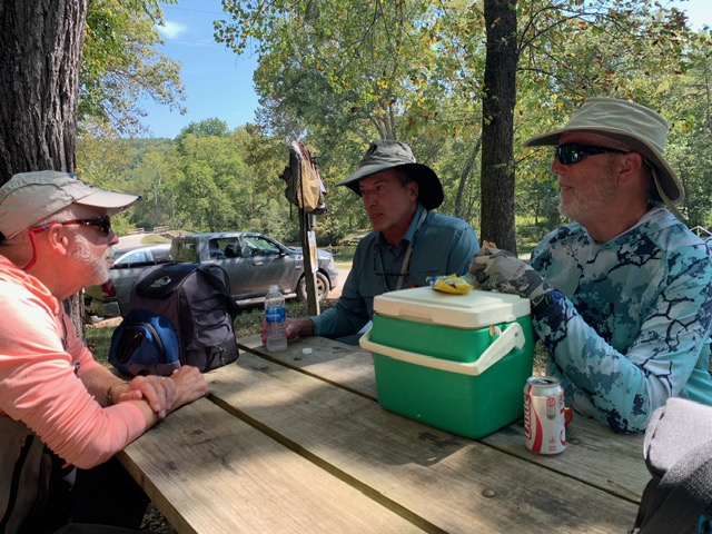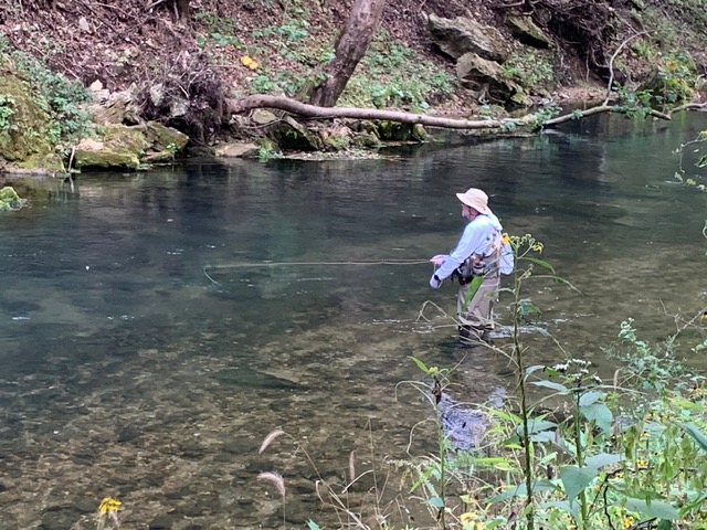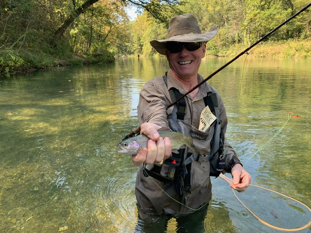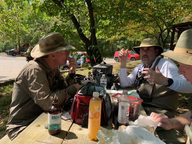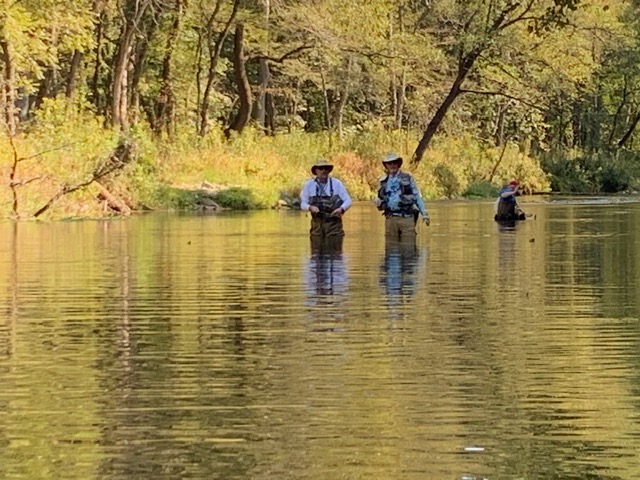 Kenny took Jim Matush while Mike Hemmersmeier went with Jim to the river to practice casting and the different techniques that were taught in the class. The other seven headed to all parts of the river. Jim and Mike did well as the “instructors” put them through their paces with several techniques: swinging flies, stripping flies, dead drifting flies. Both Mike and Jim caught their “graduation” fish before lunch break which always takes the pressure off.