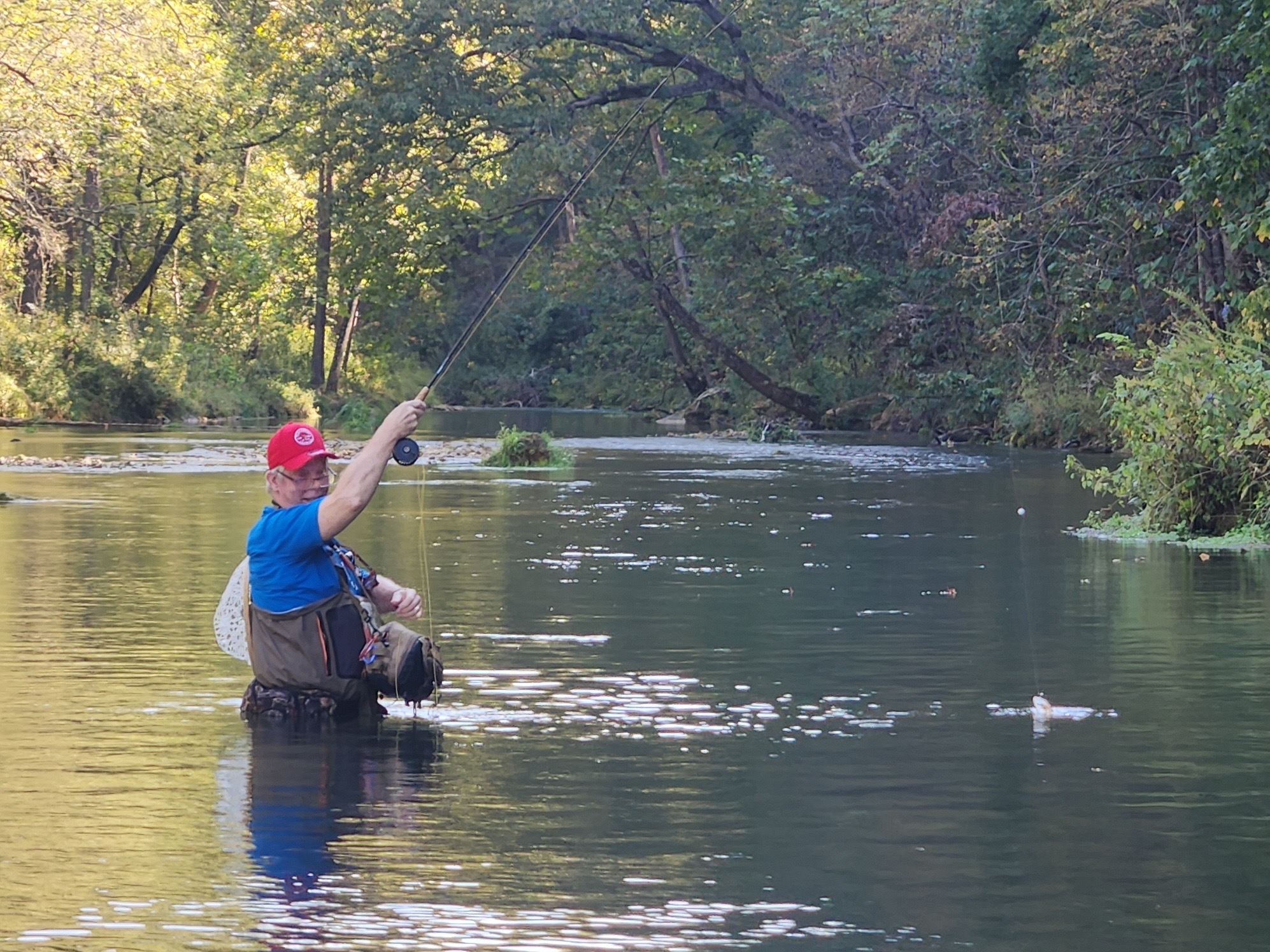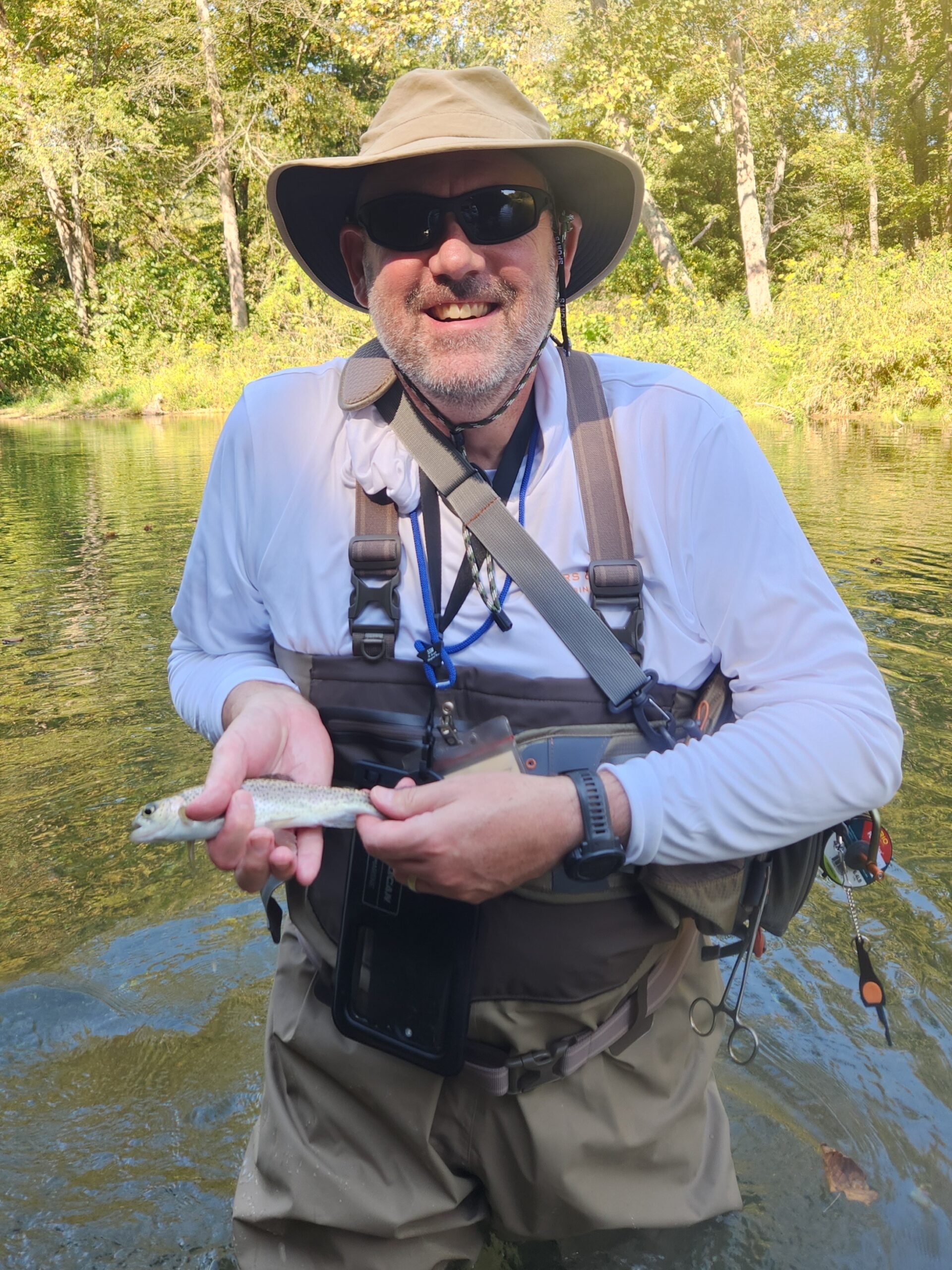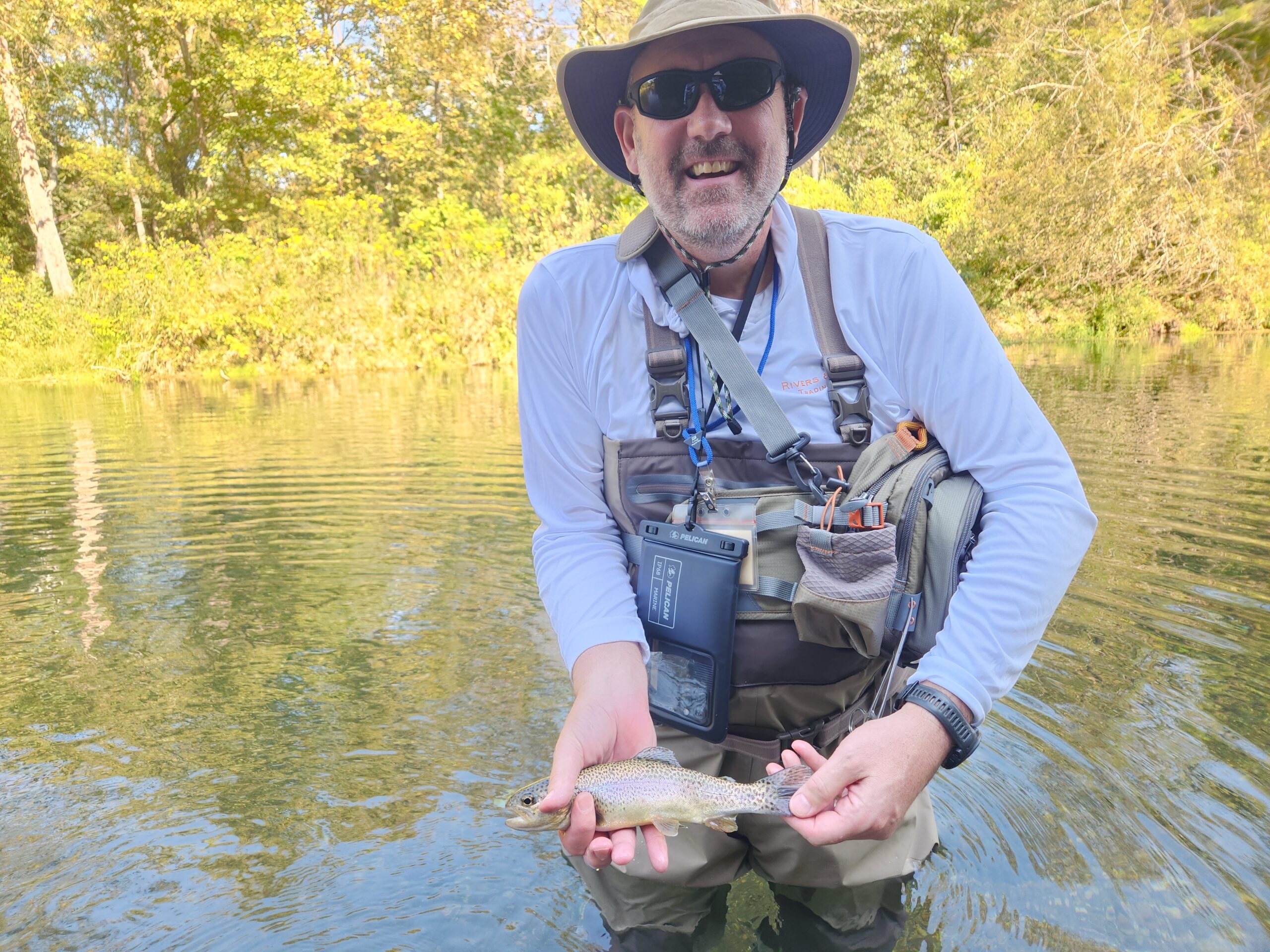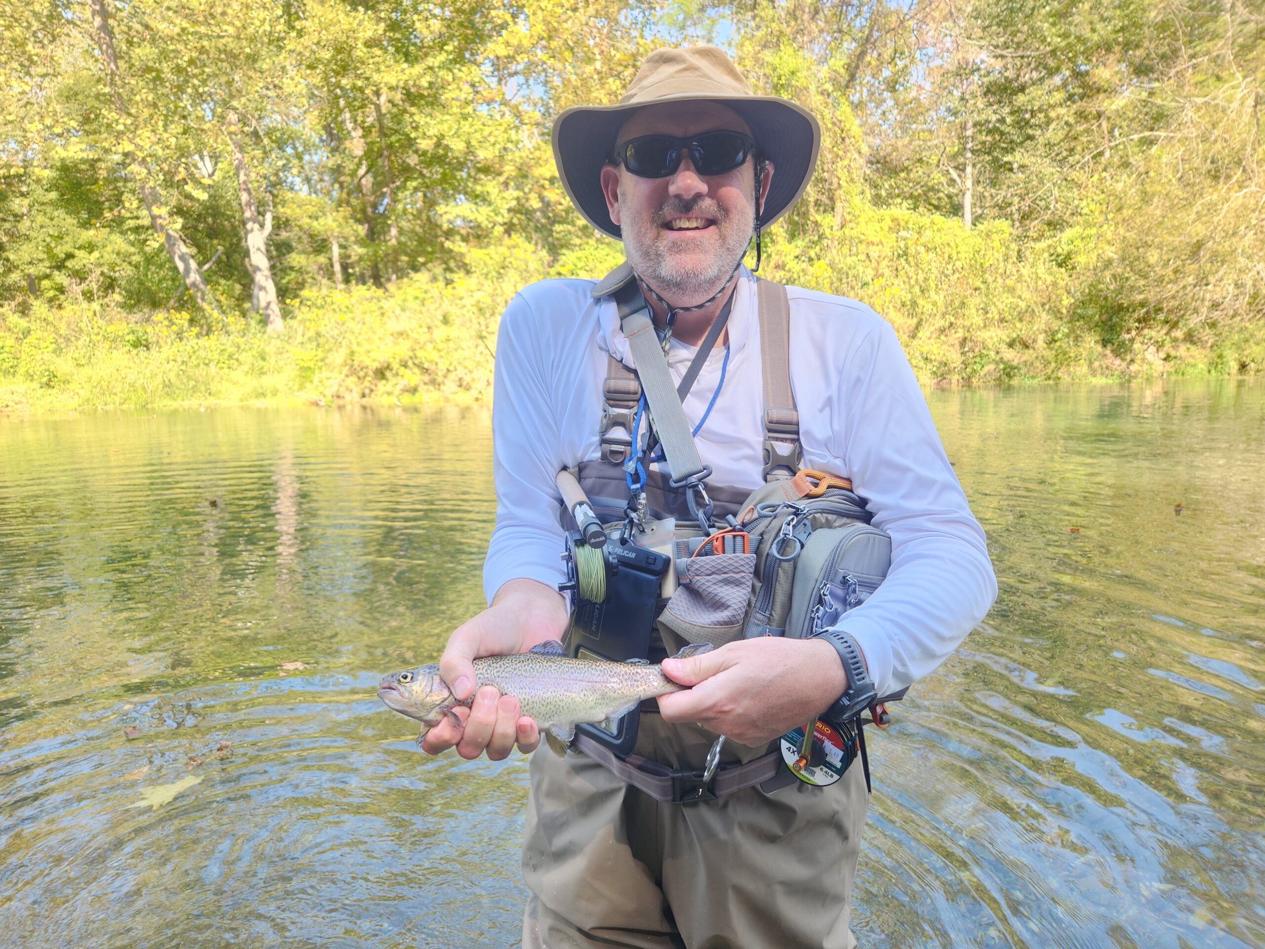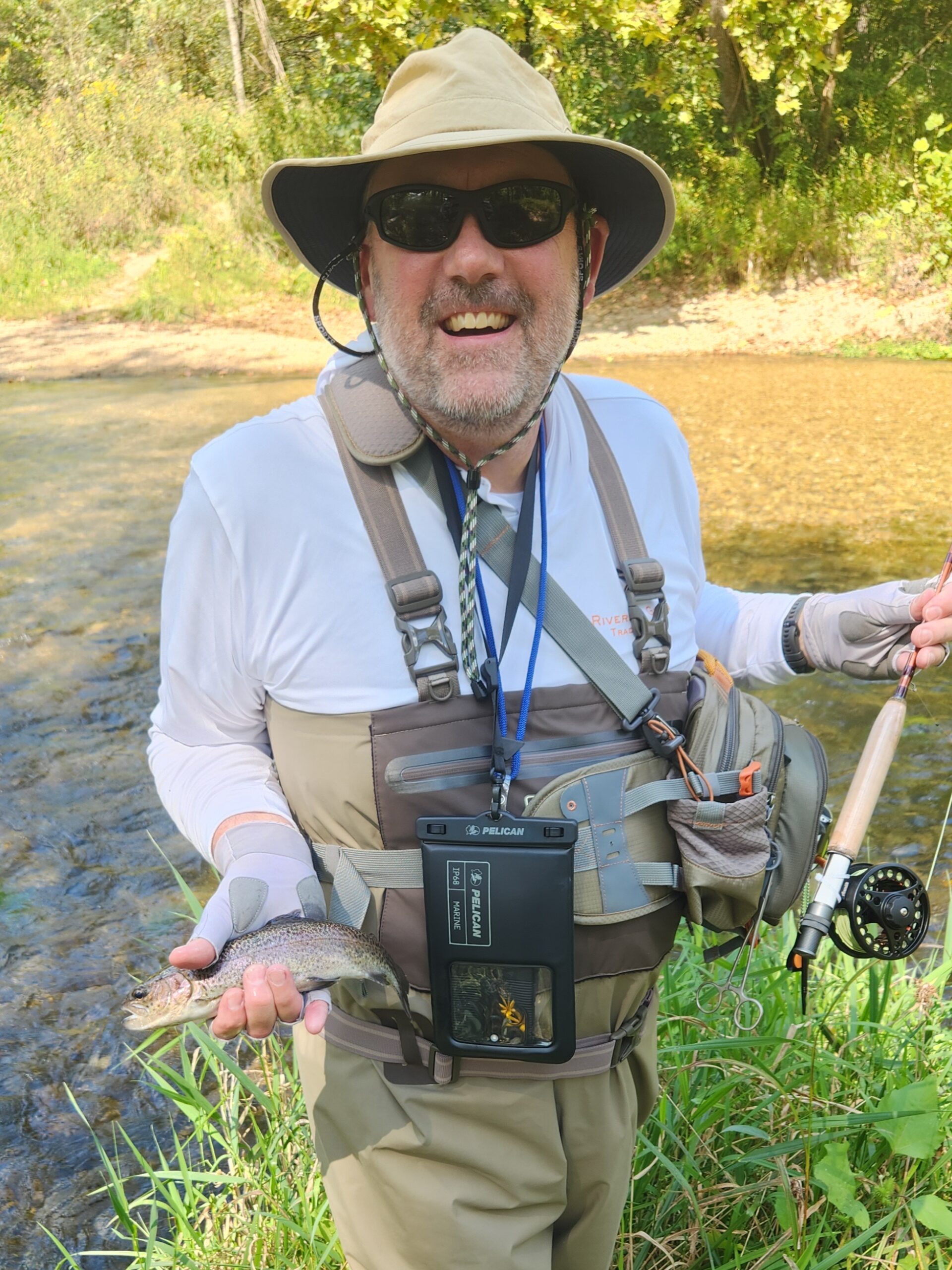 Kenny took Jim Matush while Mike Hemmersmeier went with Jim to the river to practice casting and the different techniques that were taught in the class. The other seven headed to all parts of the river. Jim and Mike did well as the “instructors” put them through their paces with several techniques: swinging flies, stripping flies, dead drifting flies. Both Mike and Jim caught their “graduation” fish before lunch break which always takes the pressure off.
