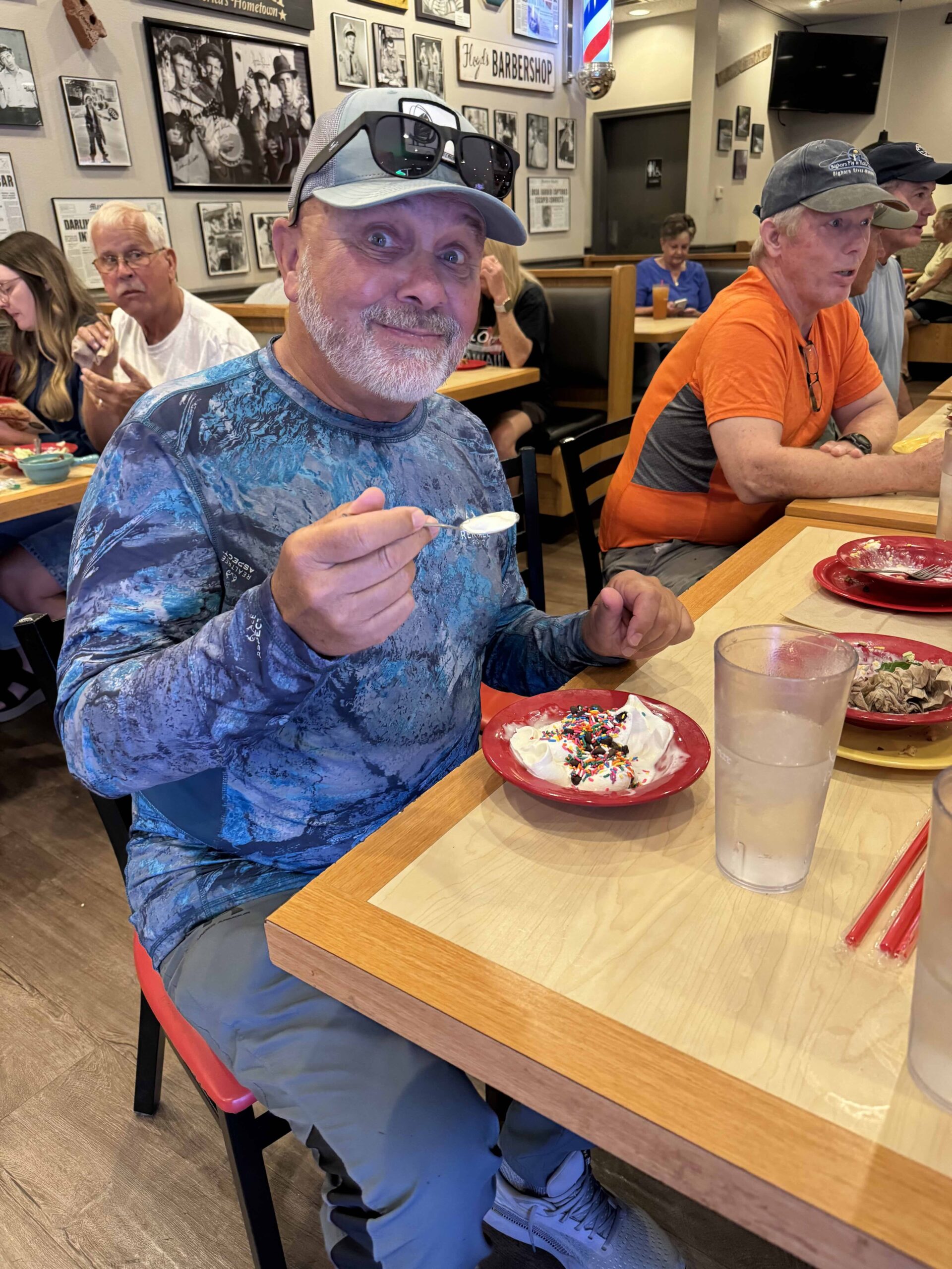According to the “new graduates” they had a blast of a day and so did the others. I love the discussions that go on while fishing, eating lunch and of course during our dinner on the way home. New friends were made and old friendships rekindled. Unfortunately, with the large group we decided to go to Jim Craig’s favorite place, The Pizza Inn. Not my favorite but it wasn’t bad, the owner visited us several times at our table and well, they do have ice cream as part of the meal (as much as you want too!!!). Now that the waters and the weather are turning cooler it is time to head out. If you haven’t graduated yet from class – why not?