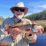Colin takes his 19’ fiberglass boat into the rivers and bayous that empty fresh water into the salt water bay producing the brackish water rich in shrimp, minnows, mullets and other baitfish that gamefish love. His boat had a spacious prow that allowed room for strenuous casting of an 8 weight Redington rod he provided. He offered streamers that imitated a fleeing shrimp or a colorful minnow.