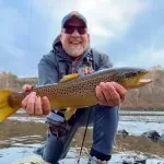 The rest of the weekend I fished during the day and socialized at night. Lots of good fish including two over 20”! I threw the fly box at ‘em and finally found some winning combinations. The winners were a red San Juan worm for most rainbows and the browns were loving a 18 Primrose & Pearl…even though it was overcast/raining. Several dozen fish in the net over the course of the weekend made for some good times. As always, made some new friend on the water, including this fellow named Joe with a nice brown! Of the oft reported fungus at LTC, I can say that I only saw two fish affected and caught none.
