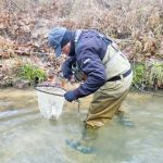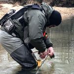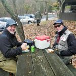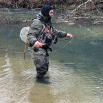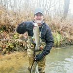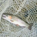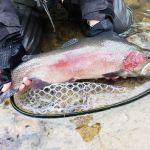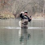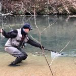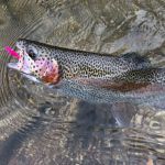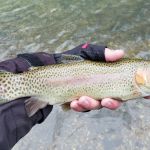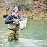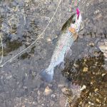 Kenny and Larry fished together starting at the top of the park. It was good for two reasons. They haven’t fished together in a long time and well, the fishing was just that – good. Larry used his infamous WWF rig (that’s the Wacky Worm Farrar rig). He used an indicator rig with a split shot followed by a pale pink chenille worm and a pheasant tail nymph (no bead head). There was something about that rig that made the trout go crazy and he caught around 70% of the fish on the small pheasant tail nymph. Kenny did some Euro-style nymphing and used several different nymphs. All I can say is the trout were hungry.