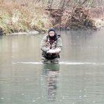 It was a cold morning with a lot of dampness in the air. The weather report said it would get into the high 40’s during the day but it never did. It was the kind of cold that chills you to the bone. The only thing that could warm us up would be if the fishing was good. And, it was!! As Al Blair would say the fishing was “Great” or did he change that to “Outstanding!”. Yes, the cows were spread out and feeding on the way up to the river. Larry always reminds us of the “cow report”.