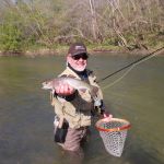 Now for a quick trip report 🙂 Jim Craig and Kenny Klimes were the only ones that signed up for a trip to Cardiac Hill this past Monday (yes, this trip was announced on our calendar). Mike Oldani had to miss it at the last minute – work got in the way. Jim and Kenny got on the water early and immediately headed upstream to fish. They did well in the morning swinging black and olive mohair leeches and dead drifting rubberlegged stoneflies and cerise worms. The water flow is slowing and getting clearer so Kenny tried some small flies – a small hatch was taking place but no luck. The big stuff was the ticket all day. They met a young man named Zach on the river who said he would look into joining the FATC – always spreading the word. They fished downstream in the afternoon all the way to Suicide Hill. The afternoon fishing slowed down some but some nice browns and rainbows were caught. Surprise!! – the 90 degree bend produced just ONE FISH all day. Shocking since we slayed them there just three days earlier. Well, that’s fishing!! The weather has been awesome and the Spring fishing has been very good. Find a trip on the FATC calendar and go along but better yet, if you can fish put your trip on the calendar and I’m positive that you will get guys to join you.
