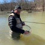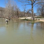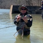 Charlie Trankler, Dave Beerbower, Vernon Preston, Tim Trog joined Kenny Klimes on the first Taneycomo trip of the year. We met Friday morning and headed to Bennett Spring State park to start our fly-fishing adventure. We found Bennett Spring park high, fast and on the “murky” side, but we came to fish. So, the gear went on and we headed to the water. The morning was tough. A few fish were caught as we fished up near the spring. After a bite to eat Tim found one of his “favorite spots” and called Kenny on the phone. “You might want to get down here and bring the guys too. I am on the north side of the dam. And catching fish!”. So, we joined him. What are you using Tim? A John Deere he said. Kenny watched him catch fish after fish and finally broke down. “Give me one of those damn John Deere’s” he said. And the catching began! I am not sure what that fly imitates but they are correct when they say, “ It runs like a deer!”. I’m “Priddy Sure” Kenny will have a few in his box next time.