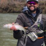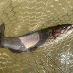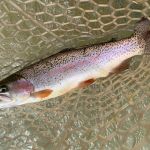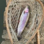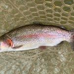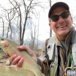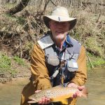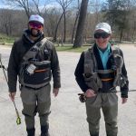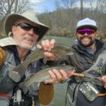 Jim reported to us that the fishing was good the day before our trip, so we were excited about our chances of trout in the net. Kenny took Chris below “the boulder” to practice all the techniques that he learned in class. Stripping, swinging, and dead drifting were on the menu for the morning. Chris lost a few fish but did great with all of the techniques. I have to admit the fishing was tough in the morning, but I assured Chris that the fishing lately has picked up during the afternoon when the temps become a little warmer.
