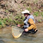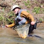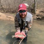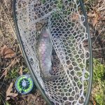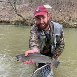 Kenny took Chris up stream to the start at the spring and work down stream from there. Again, it was really tough EVEN Kenny was having a hard time catching anything while nymphing. Even he was getting frustrated. Until a fly fisher came by and caught two back-to-back in the zone, they were fishing. Kenny asked him what he was using – a olive bugger he said. So as soon as the guy was out of site Kenny told Chris to change to an olive bugger. Why mess with success! Well, that was the ticket! Kenny and Chris started hooking fish. They met up with Ken Welter and Kenny told him to try an olive bugger. Kenny showed Ken a technique that he likes to use when fishing buggers. Bam, Ken was now on to fish too. Never be too proud to try what may be working!