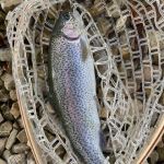 Even a moderate breeze on an open body of water affects how a bug drifts on the water’s surface.  After initially catching a few on a dry fly I experienced refusals by trout that seemed on the verge of an “eat” but then shied away at the last second.  This meant I had to analyze line drag, add floatant to the fly or even introduce subtle movement to mimic a healthy food source.  Another challenge involves long distance casts from shore.  While using a watercraft might be something to consider later, for now, a dry fly hurled at the far limits of one’s casting range makes hook setting a real challenge.  Fortunately, the density of fish provides a chance to cast to a different location and try again.  The frustration of missed strikes leads to lessons learned.  Of course, the trout seem to be learning as well.