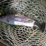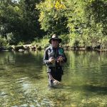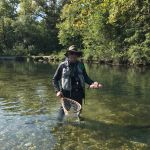 After lunch we again went separate ways. Vernon and I fished below the rock spillway and managed a few more fish. I then went downstream to fish between the ADA fishing jetties. I found that unless you can cast to the far side of the stream about all you’ll find on the fly is moss. I was able to get a fish on a nymph but it was to frustrating with all that moss. So I headed back upstream to check on Vern and he was still upright and in the same spot. We both caught a few more fish before calling it a day. Don had gone downstream to fish above the main spillway. He reported that the fishing was pretty good in that area. The best report was when Bob got back to the car smiling. He had gone below the main bridge and was able to pull in a half dozen fish. With a couple in the 16 to 19 inch range.