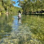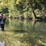 I hadn’t fished Bennett Spring for a couple of weeks so I decided to post a trip there for September 15. I [Steve Baker] was joined by Bob Hassett, Don Varner and Vernon Preston. Since we were all riding in one car we made plans to meet at Don’s house and drive out Mo.100 to I-44. We proceeded out 44 to Lebanon and arrived at Bennett about 8:30. Bought our tags at the lodge and parked upstream by the restrooms. We couldn’t have asked for a better day and the stream was fairly busy with fisherman but we were all able to find plenty of room to fish.