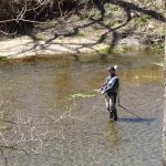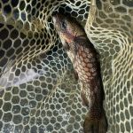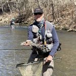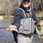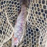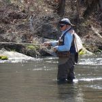 We saw few fish being netted, except by our new friend we met on the water, Aaron. He was a 20-something young man from Connecticut who had recently moved to the area for work. Aaron described himself as an eager beginner, but it didn’t take long to see he was quickly moving beyond that stage. We each had very nice visits with this young man as we crossed each other’s paths on the river throughout the day. While we shared a lot of technical information with him, he and his crackleback were doing quite nicely on their own. The day ended with several of us enjoying a shoreline, wrap-up conversation with Aaron only to learn he had been spanking lots of trout butt all day with his crackleback. And, that wasn’t just talk. We had each seen him netting fish. Time to put the crackleback back in the starting lineup.