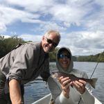 “Hey Kenny! Sorry for just getting back to you. I saw this text while we were out on the boat, then forgot to respond… we had a great time both days. The water was deep at Pointe Royale, but we still managed to catch 6 fish. We stayed by the North shore and waded up stream by the log and in front of the pond. Half of the fish were good size, 15-16” and well fed! Caught all of them on crackle backs. We had just 1 or 2 bites on midges. The next day we had Gina as our guide with River Run Outfitters. Put in by the dam and would paddle up stream and drift downtown he south bank a few times. San Juan worms worked the best. Both red and pink. I had an egg as the attraction fly and the San Juan below that. I caught 7 fish and my stepfather caught 4 or 5 and probably missed a dozen. He had more bites on the front of the boat. Once we got to the island in front of Pointe Royale, we used streamers on the South bank where there was a nice seam. Caught a couple of fish on olive/black streamers then moved down stream. Continued to catch them on the San Juan worms. Had such a great time and thank you again for the advice! My stepfather had a great 70th bday! I’ll send you some photos as well.”