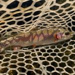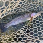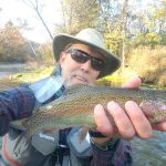 Many fish were caught but each fly fisher’s catch totals were commensurate with their experience levels. Some nice browns and rainbows came in at the 15 – 17-inch range with many others the average size 10 – 12 inches. There was good success with a myriad of flies ( Hair of the Dog, the House of Payne, Perdigons, cerise worm, and some tiny dry flies) but one fly in particular stood out as better than the rest. A bead “fly” produced many fish. This fly, used often in Alaska when the trout are spawning, is just want it is – a bead. The bead is ‘pegged’ on the tippet about two inches from the hook (a larger than normal curved hook – size 8 -10). If you fish two flies let the bead be your point or bottom fly about 20 – 24 inches from your top fly. As the fish takes the bead it will reject it quickly but when you set the hook the fish will get hooked on the outside of the mouth.