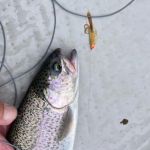 I was amazed at how the fish were biting at the creek and was again reluctant to leave, but I hadn’t made much of a dent in the miles I needed to float. I decided to compromise by fishing while drifting and reverted to the jig and indicator. Despite fishing in a rather haphazard way and trying to maneuver around obstructions I caught another 8 trout before arriving at the stretch of river below Cardiac Hill.