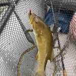 I only saw one other angler all day and he was just below the suspension bridge technically still in the trout park. He was picking up trout too but the real action seemed to be in the river itself. The river flow was just over 900 cfs and temps were in the 60s. I included a couple of photos showing what’s left of the Adventure Outdoors outfitters building and one showing many saplings still bent after the water receded. The catching was truly phenomenal, the best I ever enjoyed. My only regret was not having someone else in the boat to share it with (and maybe to take a turn at the oars too). Hope more FATC guys can catch some of these escapees too.