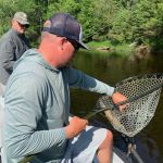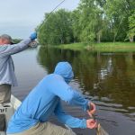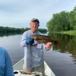On day three we fished the lower section of the Menomonee river called McAllister with our guide Charlie. This section had homes along the shoreline and was much wider than the areas we fished the first two days. But this section was noted for bigger smallmouth and it was true as we caught several pushing 18 – 19 inches. Unfortunately, we didn’t get the elusive 20 incher but several on the “Team” pulled in a couple smallmouth over twenty. Again, top water was the fly of choice although I caught a very nice smallie on a streamer pattern.