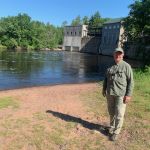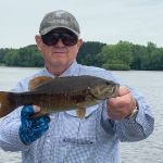 On Day two we fished the upper Menomonee near the “Dam” with guide Todd. Again, we concentrated on top water fishing.  On this day the sun was out most of the time and we thought the top water bite would improve but again, we boated about 8 – 10 smallies and lost about as many.  This section of river was a little more “used” as we saw a scout troop set up for a canoeing trip.  What a beautiful place to teach young men scouting.