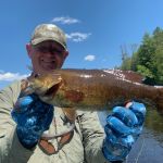 Now for the report:  I drove up to Chicago on June 26th to stay with the Berwyn bear and of course the night was filled with food and bourbon. The next morning, we packed the car and took the 5-hour drive north to Pembine, Wisconsin. If you would have looked down for a second you would have passed it. We checked into our motel and headed over to a meet and greet hosted by Skip, who had recently purchased a beautiful cabin on the river. Here we met Team Smallmouth and the guides, received our “assignments” and locations to fish during the three-day trip. Of course, we had a few beers and brats while we talked of past fly-fishing adventures.