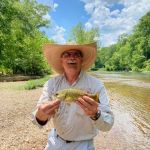 On 6/07/22, FATC member Denny Garner and I, Al Harper, enjoyed a nice float down the Meramec River in an inflatable drift boat.  On that trip we caught both trout and smallmouth (with an occasional — almost accidental — bluegill or pumpkin seed bream as well).