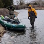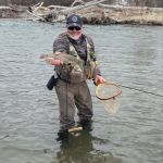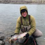 On day four we were going to do a long float on the Yellowstone River. Yes, the weather even got worse. It snowed most of the day and even though we dressed for it, we were still cold! We fished using Spey rods and throwing streamers. We were hoping that a brown or two would decide to chase our streamers. We made MANY casts and tagged into only a few fish. Matt caught about three, Kenny had one brown (his first on a Spey rod) and Lawrence tagged into the biggest fish of the trip a 21-inch brown trout on his Spey rod. Did I say it was COLD and Snowing? Matt called Uncle first and then Kenny followed shortly thereafter. We had to pull Lawrence off the water as he thought he had one more big trout in his day. Didn’t happen so we floated to the takeout spot and headed “home.”