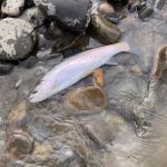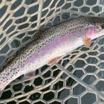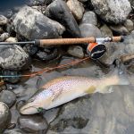 Our first day we hit the Gallatin River. Lawrence took us on a long hike through the woods to get to his favorite spots. Immediately, I hit on fish with ESN rod and flies. Three rainbows and at least fifteen big white fish. Come on now – they are part of the trout family! It’s Montana’s state fish! Matt and Lawrence did well too with their Spey rods.