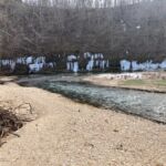 While brown trout are being caught below the park boundaries too, these were raised at the Sheppard of the Hills hatchery in Branson and therefore their numbers weren’t increased as a result of the November flood. When I commented that fish now in the river seemed hungry the hatchery worker said he wasn’t surprised because they’ve gone from a reliable and easy daily diet of 2,000 ponds of fish food to whatever they can now track down on their own. He also said determining how many fish a particular stretch of any river can comfortably support is both art and science. So it would appear that miles of the upper Current will be experiencing unprecedented fish-per-mile counts for weeks to come.