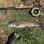 There were lots of fish of various sizes to be seen there. This area normally had a lot of moss/vegetation there, but now it’s scoured out. I started getting bites at a pretty regular pace every 2-3 drifts. In the next 2 hours, I continued slowly working my way down, avoiding the 2 newly fallen trees hanging from the far side. As I waded down the middle of the stream, I caught fish in front of and behind me. It didn’t take long to lose count. I eventually switched over to a CK Nymph, a fly I’d tied and wanted to try out. It did not disappoint either.