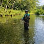 Glenn Haake had a slow morning.  At lunch, Dan Stag fixed him up with a Montauk Murderer (tan version of the Bennett Springs Killer in photos). I believe these leech patterns are Stag originals.  Glenn netted 12 in the afternoon – mostly just above the boulder on the opposite/near bank.