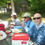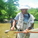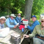 John and Aaron went out to practice casting and different techniques while the rest hit the cool waters of the Montauk spring. Overall the hot day wasn’t too bad as the cool waters made the fishing area comfortable. Everyone did well using an number of flies from wooly buggers, soft hackles, son of san juan worms, scuds, midges, RS2, etc… The trout were caught in their usual hideouts but more in the faster moving waters.