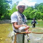 Aaron graduated quickly with John by his side and proceeded to catch fish throughout the day. He did have a lot of hookups and lost one very nice fish. He seemed to be excited about this new adventure – fly fishing. And I’m sure he’ll be back for more.