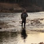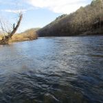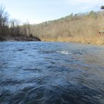 The river rose a foot overnight. I headed out just after sunrise and walked the three quarters of a mile to The Falls. If you haven’t visited ROLF, and aren’t familiar with The Falls, don’t let the term fool you—it isn’t much of a waterfall, as far as waterfalls go. It is a beautiful part of the river that boasts a sharp two-foot drop across the river’s width. Even at normal river depth there is very little of the area that I am skilled enough to wade and fish. After surveying the area and taking in the beauty of the river I decided to mark my territory before plunging forward. I love the zippered waders that Julie got me for Christmas, they are truly a gamechanger for this endeavor—a big thanks to Pete for introducing them to me on my graduation trip!